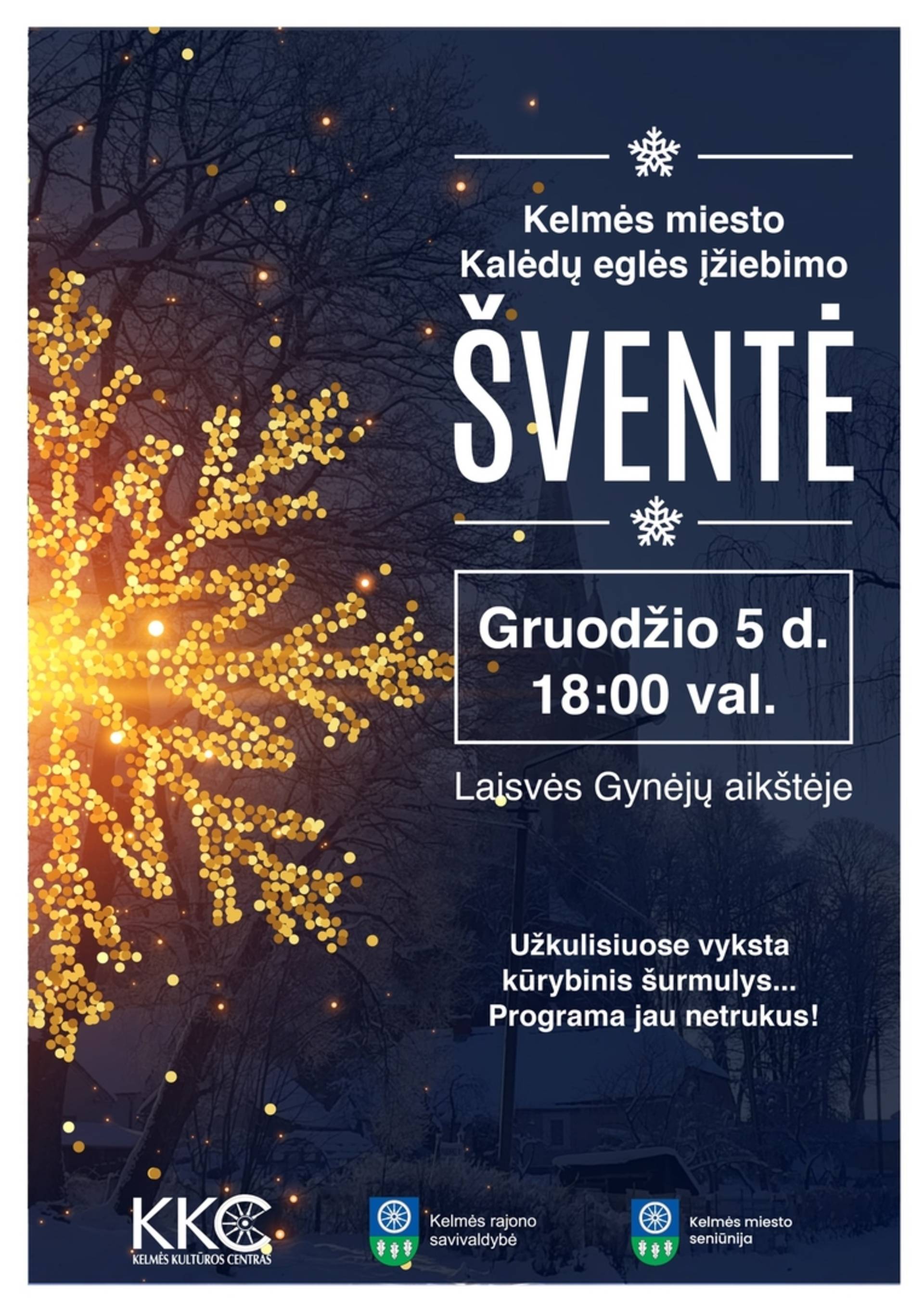 Gruodžio 6 d. 18.00 val. Kalėdų eglės įžiebimo šventė Laisvės Gynėjų aikštėje